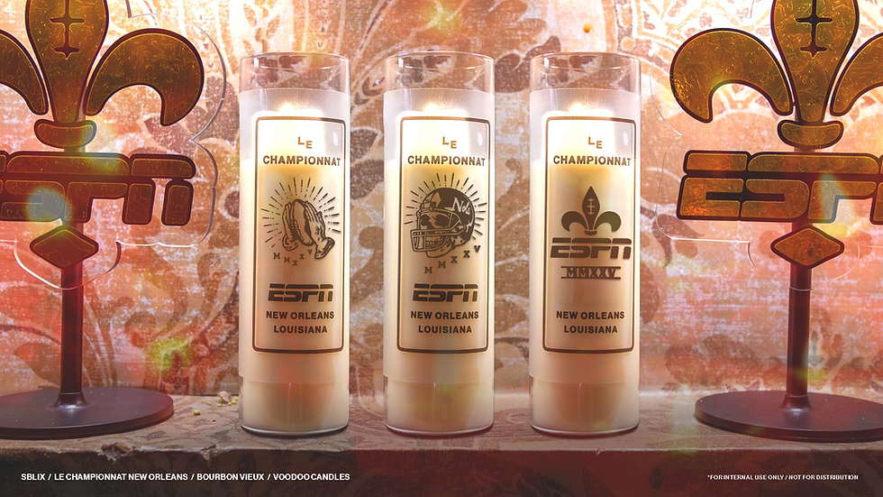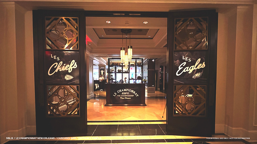 To celebrate Super Bowl LIX in New Orleans, Louisiana, ESPN hosted a "Le Championnat" three day event on location. The events included a welcome reception at Hotel Monteleone that had both indoor and poolside areas, a Saturday night party at Bourbon Vieux in the French Quarter, with a performance by Trombone Shorty, and a Sunday Tailgate at the Vintage Rock Club. The weekend featured original artwork that dove deep into the rich and vibrant jazz culture of New Orleans. Artwork included event logos and environmental design.